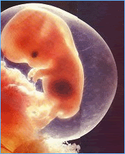 Het zenuwsysteem ontwikkelt zich nu snel, vooral in de ruggegraat en de hersens. Hersengolven kunnen nu al gemeten worden, en het hoofdje wordt groter door de groter wordende hersens.